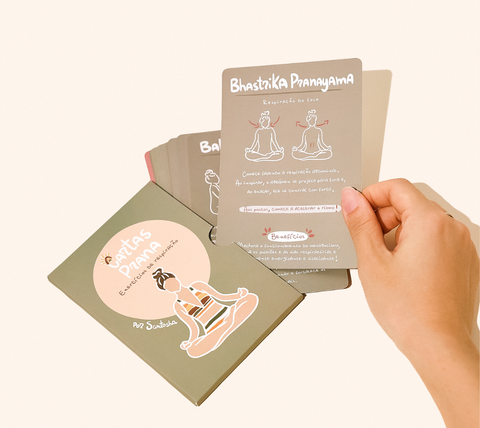 Apresentamos como CARTASPRANA , um baralho ilustrado composto por 15 cartas que traz 11 técnicas diferentes de Pranayamas.