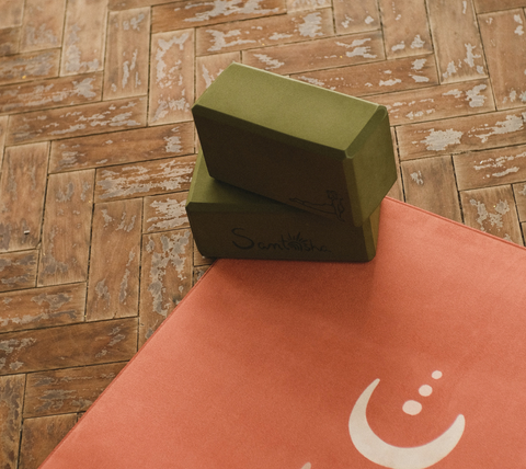 Os bloquinhos, além de lindos, são bem firmes e resistentes. Também são confortáveis pra sentar no início da prática!